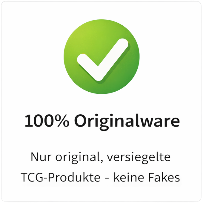 Wir verkaufen ausschließlich originale, versiegelte TCG-Produkte direkt vom offiziellen Handel – keine Reprints, keine Fakes.